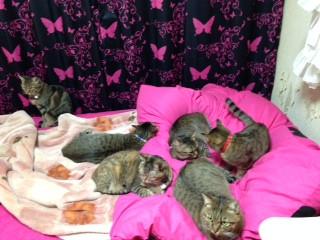 猫好きで現在6匹飼っています。 みんなとっても可愛いです♪”+外猫だった猫シロコが加入 合計7匹です♪ 早く仲良くなって欲しいなー♪シロコは先日亡くなってしまいました。でも、心の家族です。