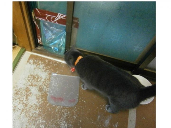 戻ろうとすると猫ドア分サッシを開けずに出たので