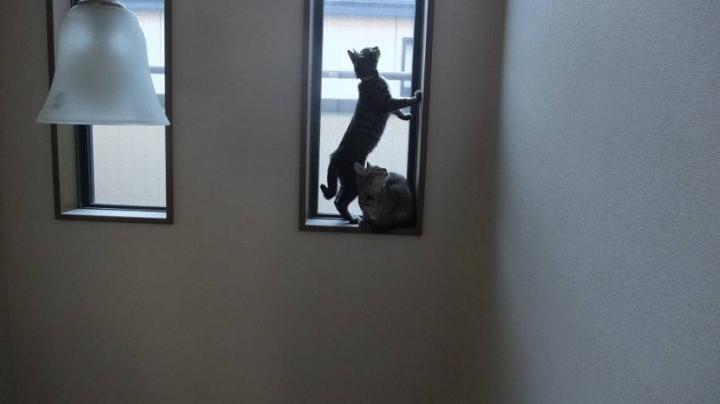 窓辺のにゃんず。どっちがアロマ?コロン?・・・???