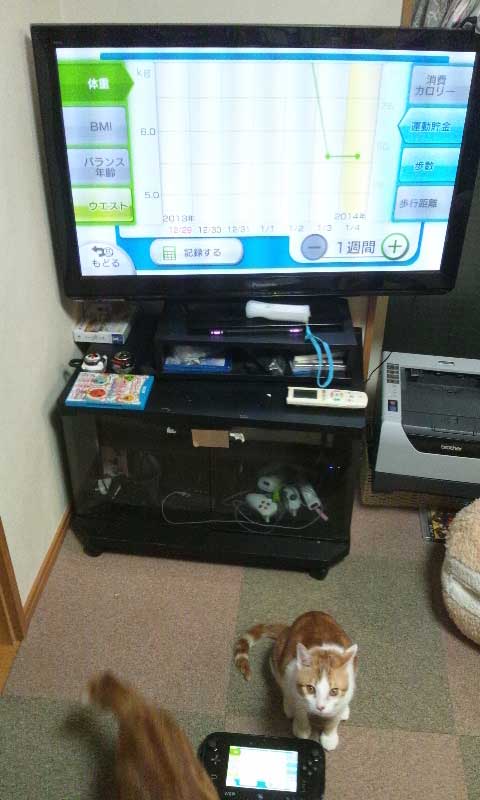 WiiボードがあるとWiiFitが安い(Fitメーター購入でOK)ってんで、ダイエットの予定はないですが買いました。で、それにペット測定が有ったので早速2匹をチェック。