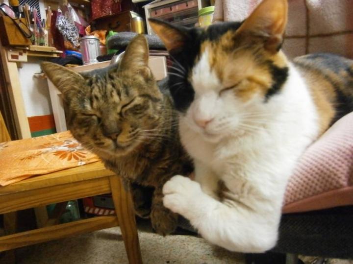 (不思議な寝方、2匹落ちそうに寝てました)