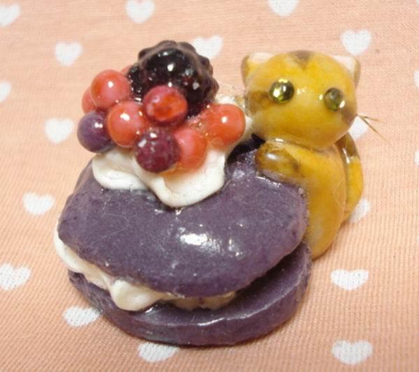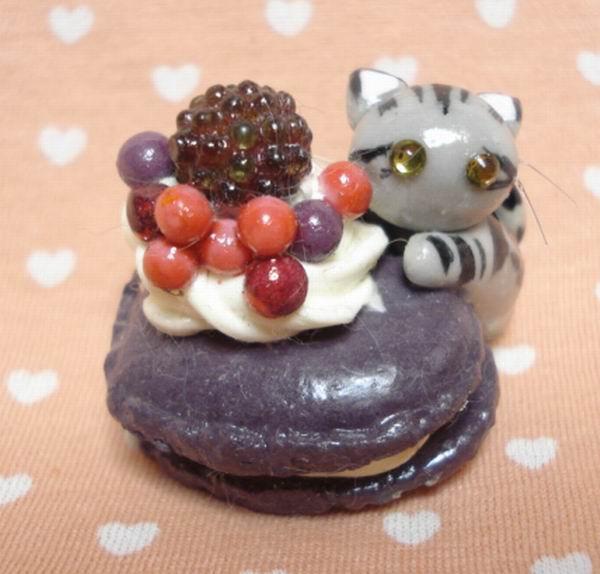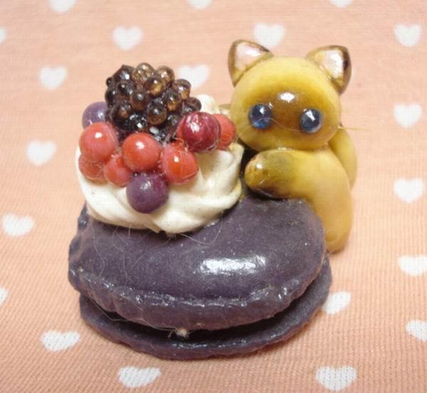 ハート型のフランボワーズマカロンをひとりじめしたにゃんこを作りました