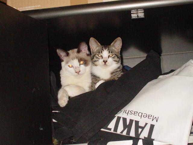 あけてみると、ニャアちゃんとその後ろにしょぼ~んとした白ちゃん。