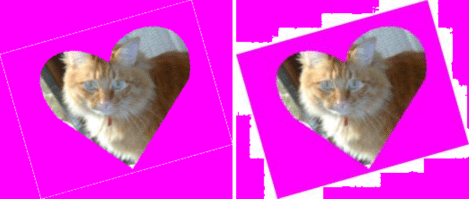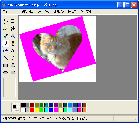 写真の通り周りに白い部分がつぎ足されて、キャンバスが大きくなりました。これは、パソコンやウェブ上に上げる画像ファイルは、回りが透明処理をしていても、基本四角の形しかできないからです。