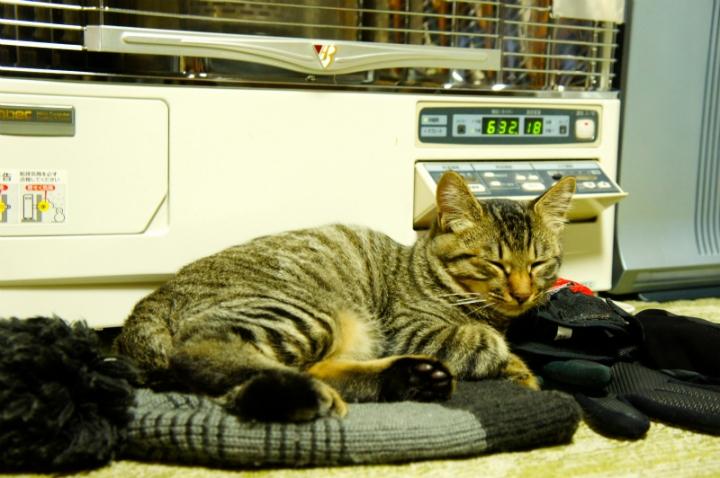 2014年最初の幼稚園の後は、ストーブの前でぬくぬくです。
