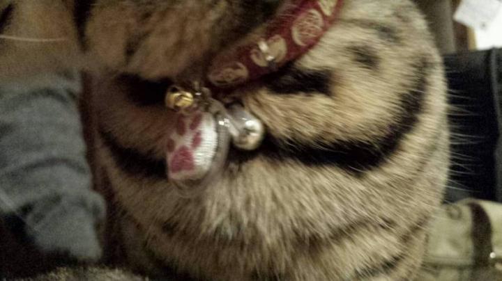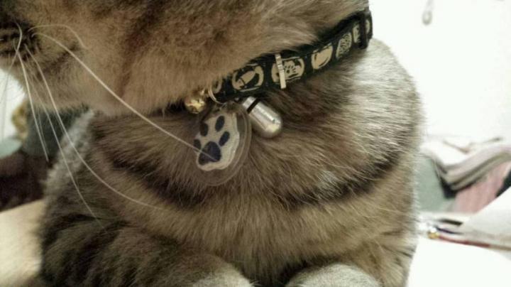 帰ってから早速ドラニコちゃんの首輪に付けてみました。