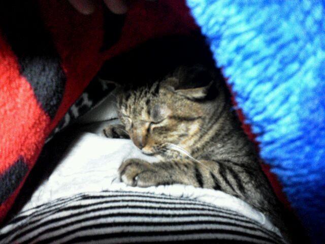 オハナがお腹を温めています