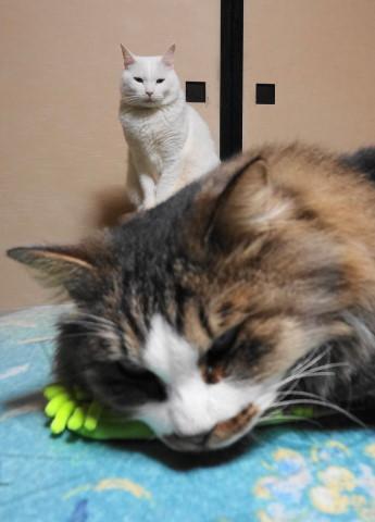 ただし、帰ってきたタビ君を明らかに歓迎していません。