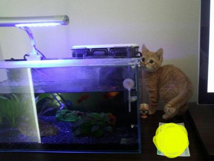 シュシュが水槽の水を飲むんです(*≧Δ≦)