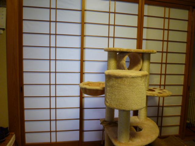 ホームセンターで障子紙(もちろんプラスチック)を買ってきて修繕しました。