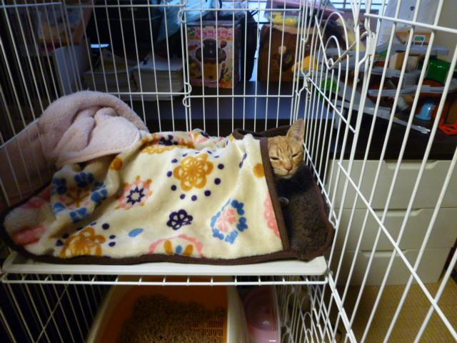 いつもは布団の上に寝てるのに今日は潜ってます。