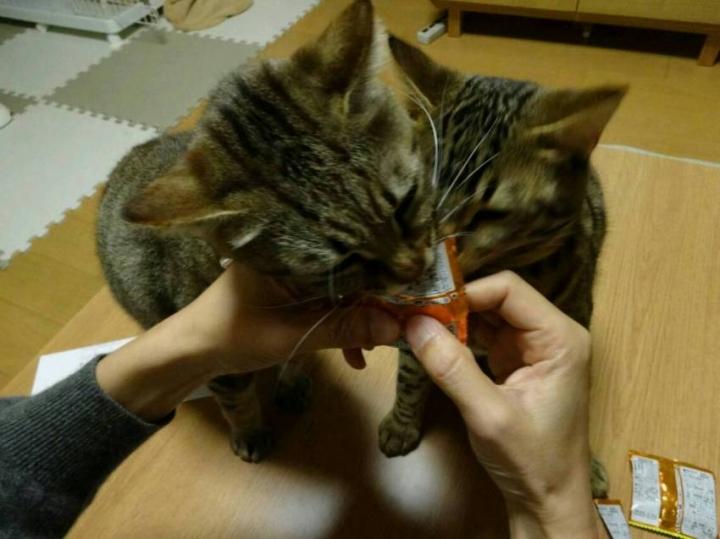 おやつのフードの香りに反応(笑)