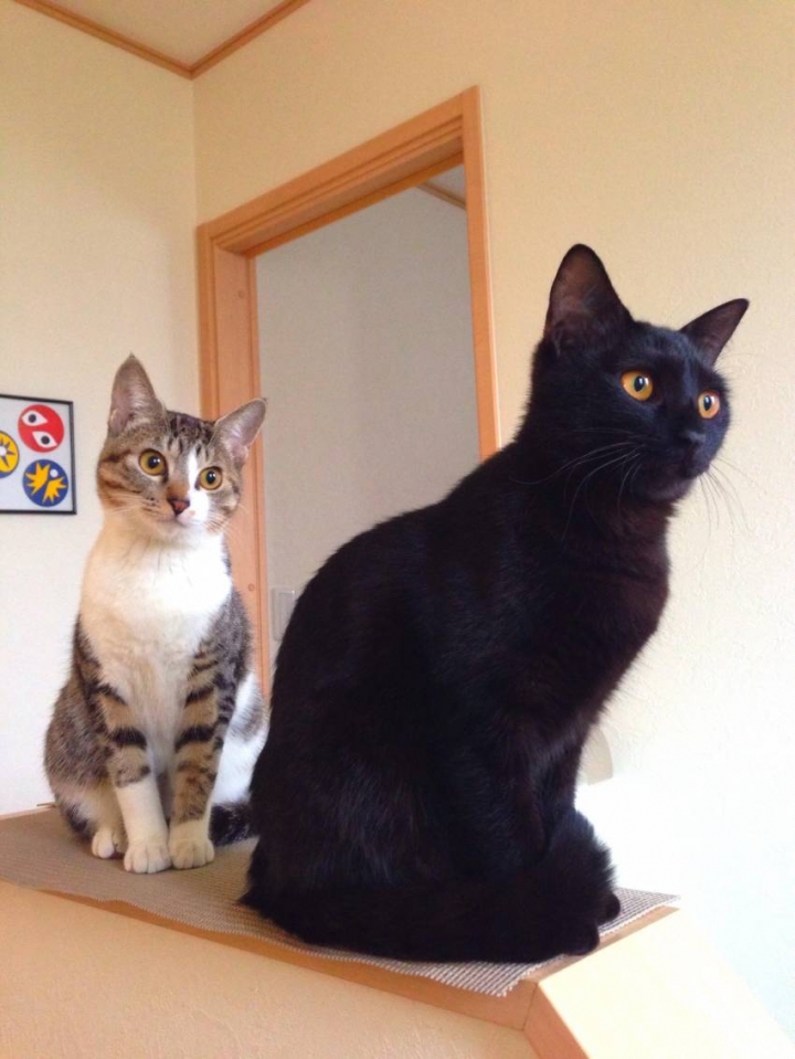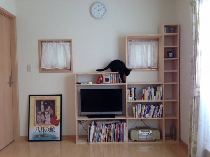 猫ちゃんたちが遊べるようにと、本棚は階段状に作成。