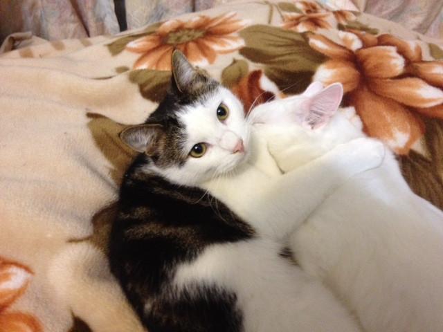 2にゃんは朝から仲良く、ちゅっちゅ大会。