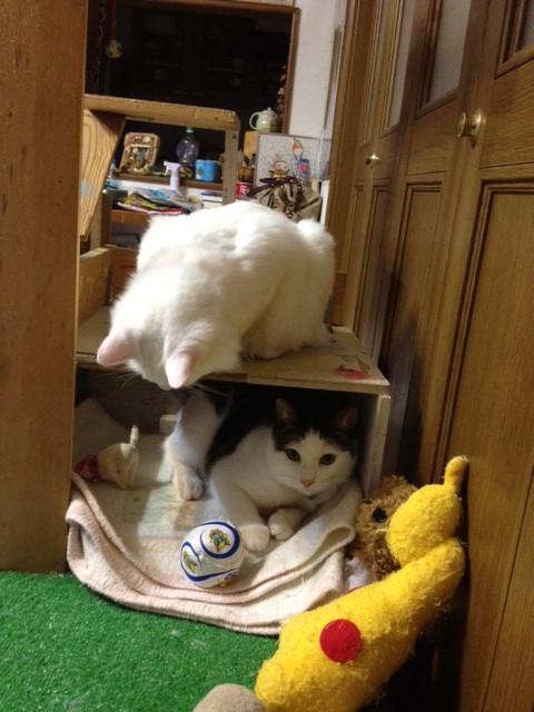 マロ兄ちゃん、そこあたしの場所。ちょっと、どいてよって言ってます(笑
