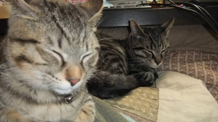 わたしの足の上で寝ているんですが、さすがに2匹で5キロ