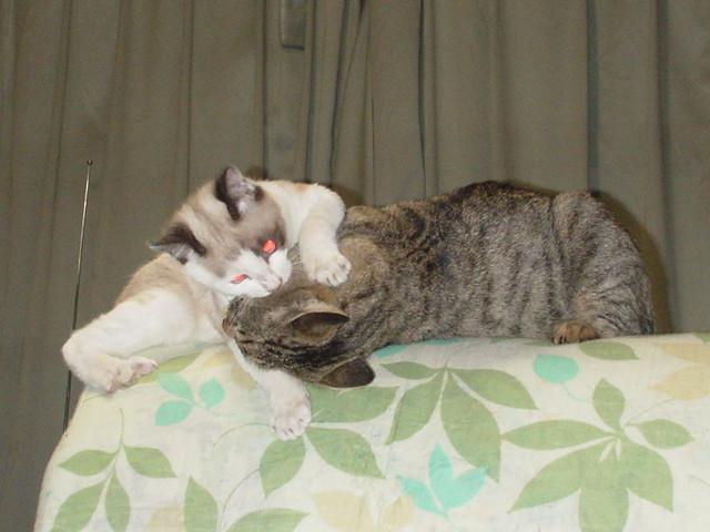 廊下でドタバタやってる白ちゃん、トラちゃん。