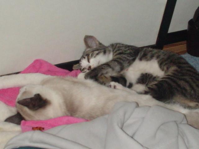 ニャアちゃんは二男の横でアンモナイト状態で夜中の狩りの疲れを癒していた時だった。
