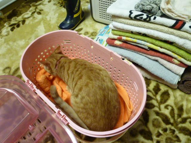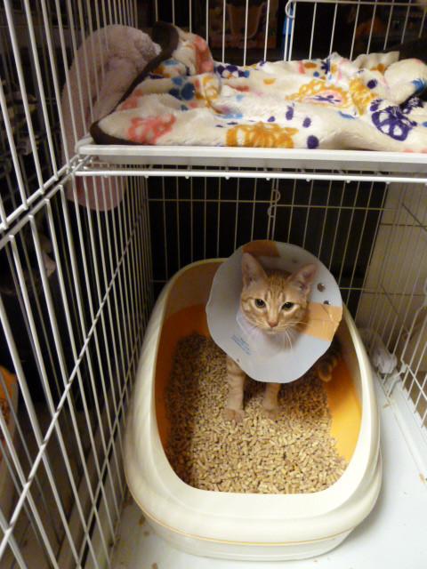 エリザベスカラーを装着されたななはおとなしく私に抱かれキャリーへ。