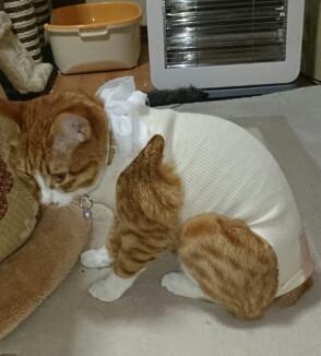 「ご覧の通り何ら問題なく、すこぶる元気です。只・・・きなこちゃん余程カラーが嫌だったのか点滴の管を噛みちぎりまして・・・」