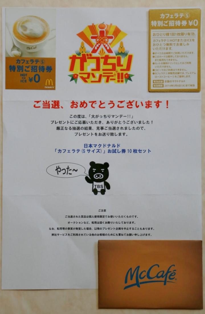 日本マクドナルドの封筒に「がっちりマンデー!!」 プレゼント在中