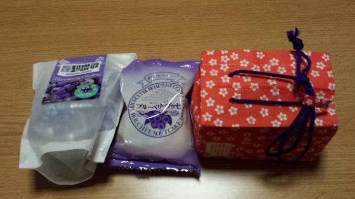 志賀高原名物の信玄餅と、志賀高原名物のブルーベリークッキーとブッセ…だそうです(-_-;)