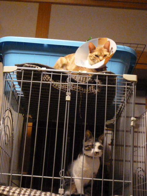 ななはケージから出てもなぜか気がつくとそらのケージの上が定位置になりました。