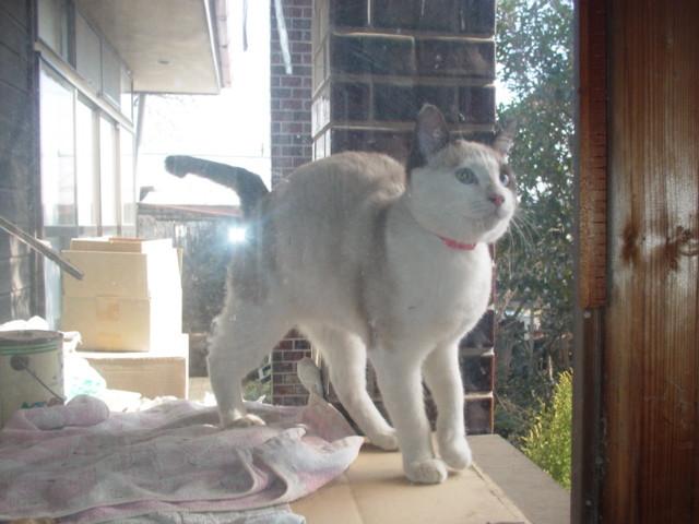 見ると白ちゃんがガラスの向こうに。家の中を覗いてる~。