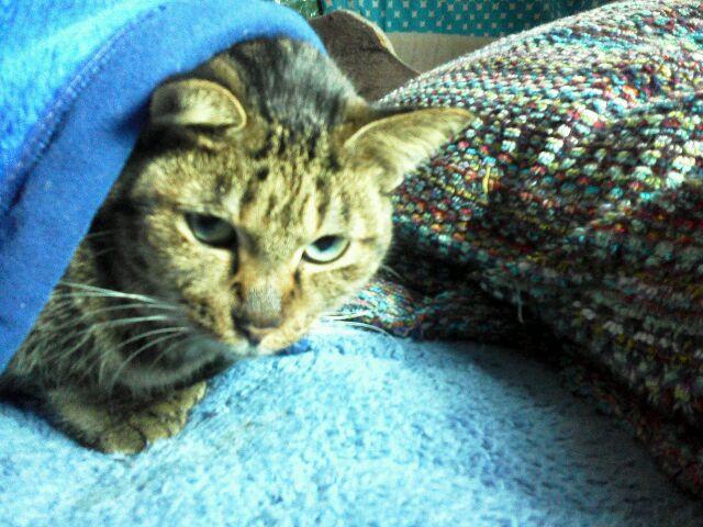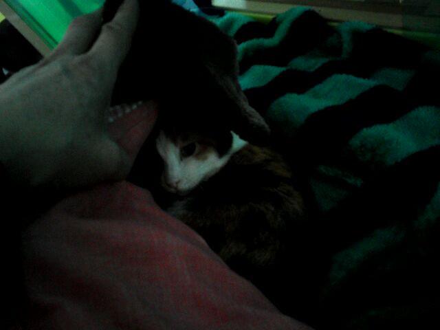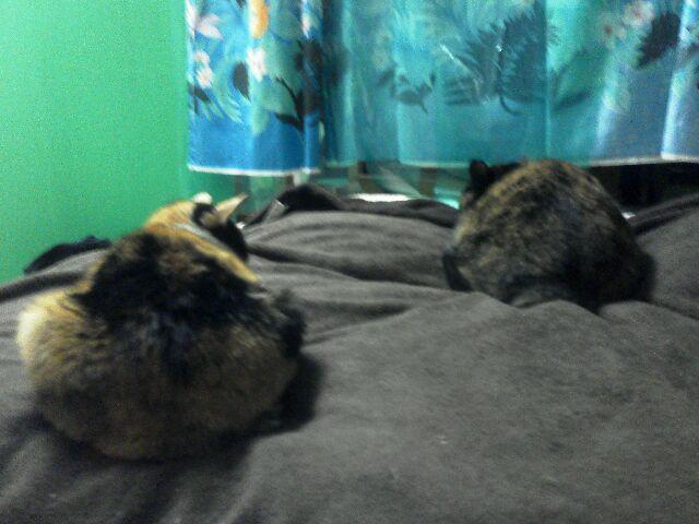 距離をおいて湯たんぽの上でおやすみ