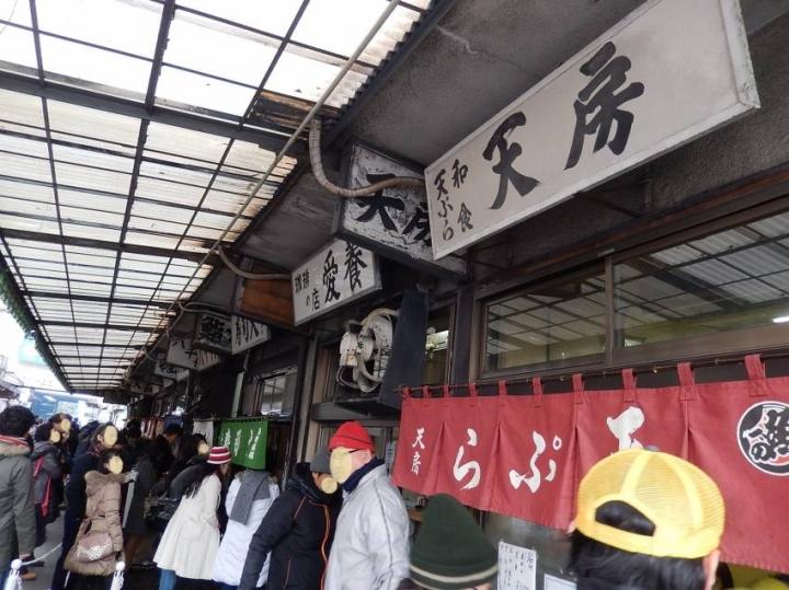 天ぷら屋さんは数名並んでいた。店内は20人も入れないくらい。
