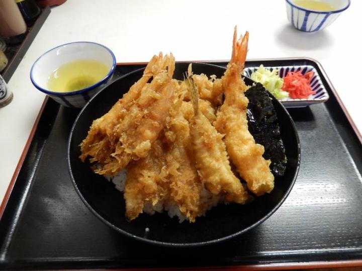 4人掛けのテーブルに腰を掛け、3人は本日の天ぷら丼を注文。