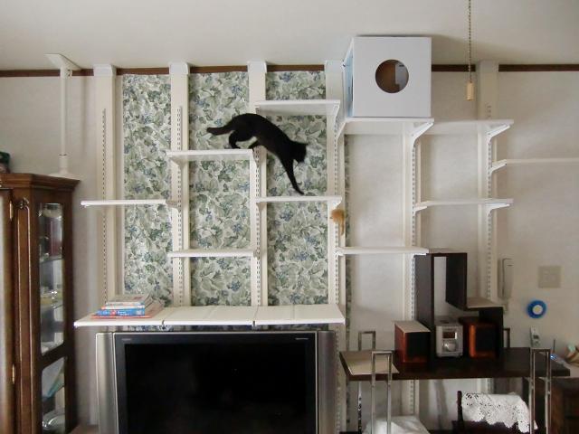キャットウォーク最上段で、悠然と尻尾を振っているナイル。