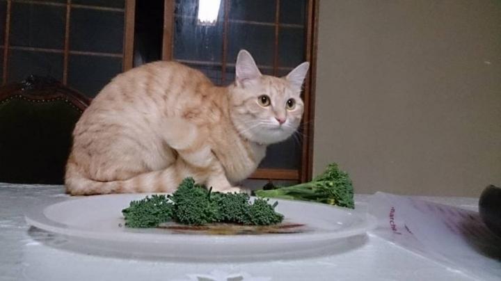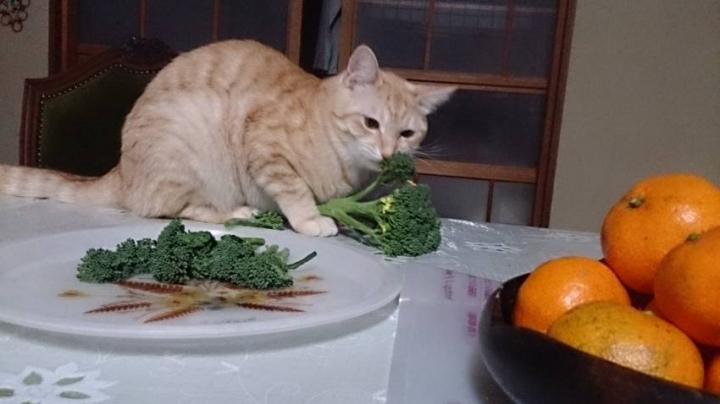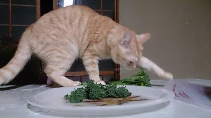 花子、花が咲いた庭のブロッコリーが気に入ったみたい♪♪