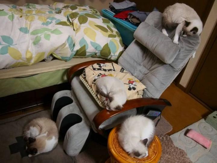最近のニャン達のマイブームは、あばれて疲れるからなのか??