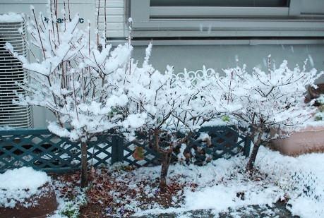 ドウダンツツジの枯れ枝に雪の華を咲かせました。
