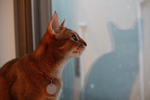 電気を点けたら窓ガラスにも…ダブルみ~ちょだ( ´艸`)