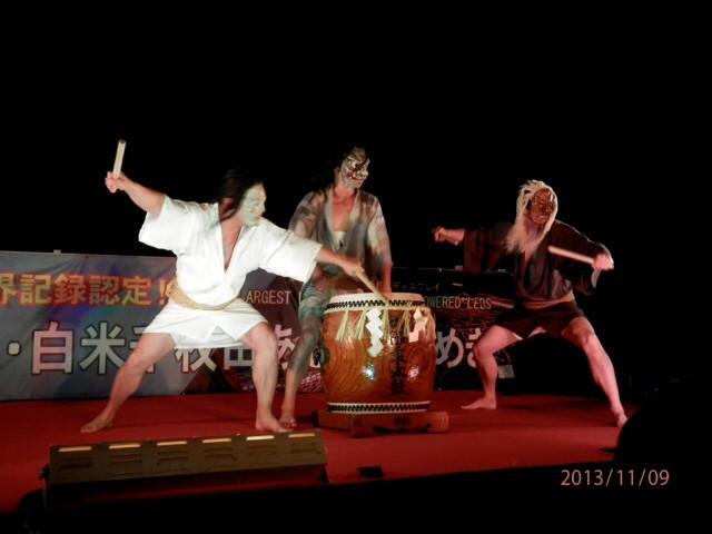 当日は、イルミネーション点灯、花火の打ち上げ、御陣乗太鼓などの
