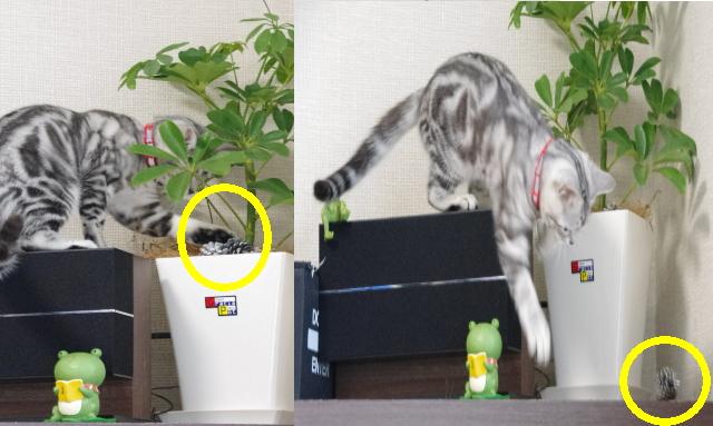 観葉植物の下に飾った 松ぼっくり チョイチョイやって
