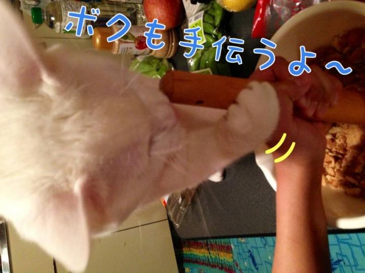 でもね、きっと手作りのお菓子には、みーくんの愛情もプラスされたと思うのママ的には。ほら、猫の手も借りれたからね?