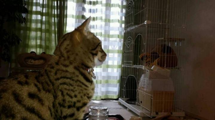 よく見たら、猫がいないケージは片付けられてるのに何故かトイレの砂が点々と落ちてる(そんなもの??いやいや、違うよね)。