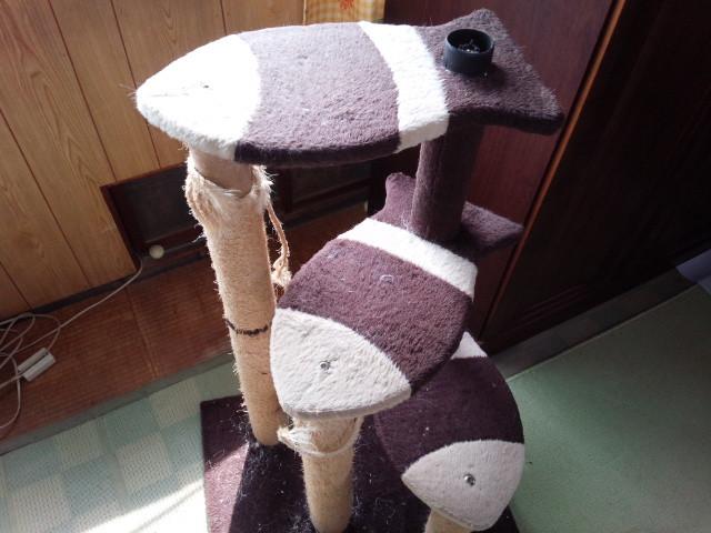 それから2年ほど最上段がないまんま使ってましたが、柱の爪とぎ用麻紐がご覧のとおり、ボロボロになりまして。
