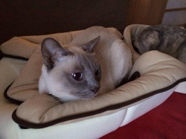 屋根と言ってもにゃんこハウスの屋根ですが、写真の通り自分の家がつぶれても気にせずに乗っかっています。