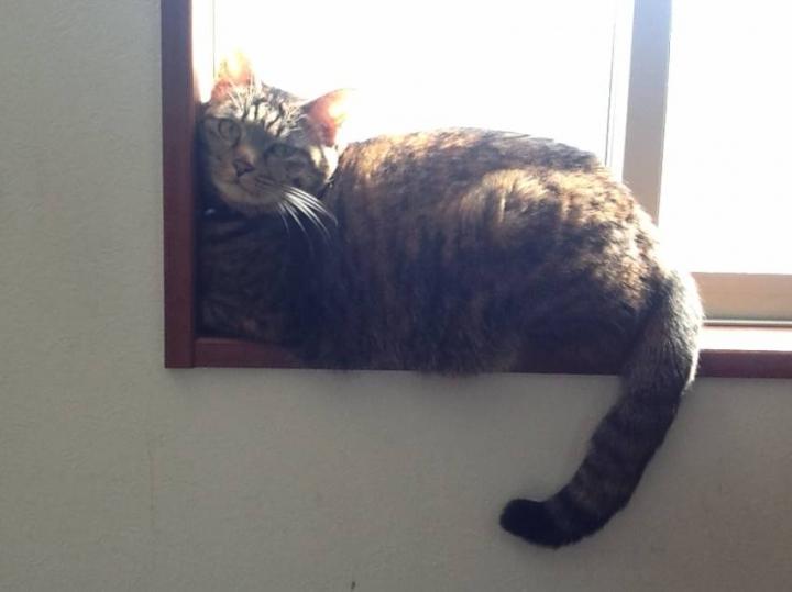 せま~い窓枠に無理やり乗っかって、肉はみでてるし・・・(>_<)