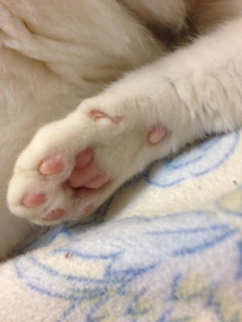 あ、肉球のまわりのもふふもふがばっちり写ってます。
