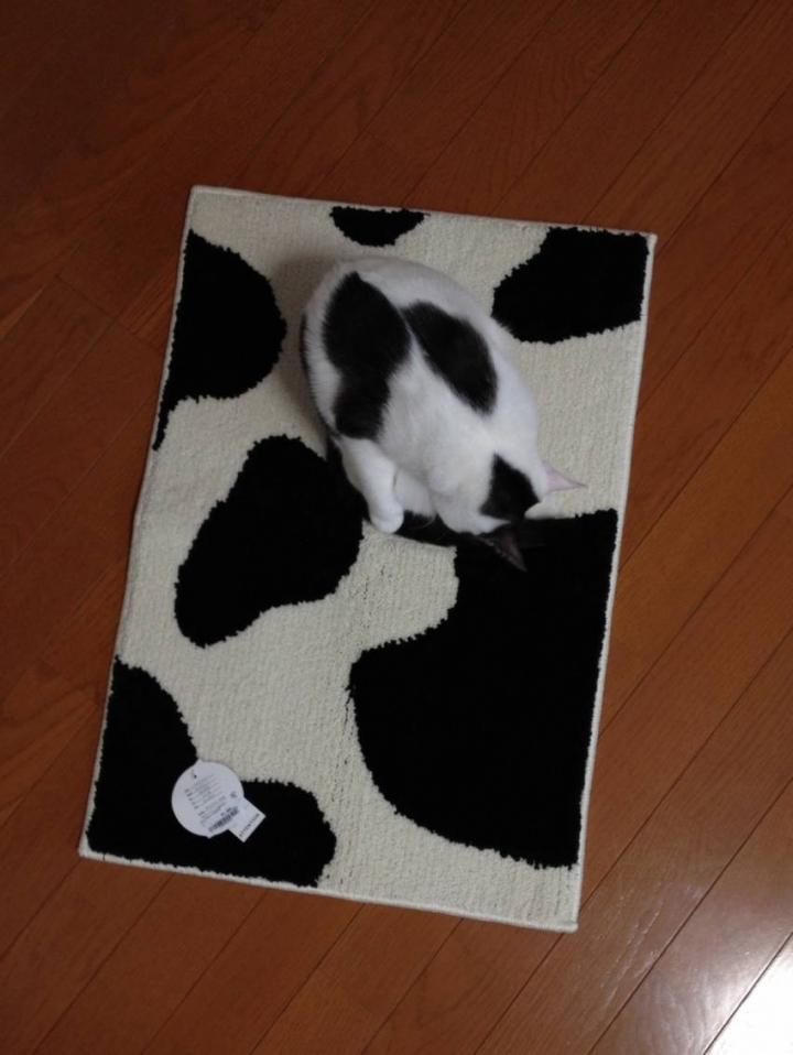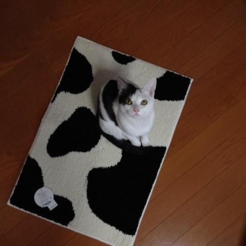 まだ寒いのに、シイの冬毛がどんどん空中に、布団に、この牛柄マットにも…