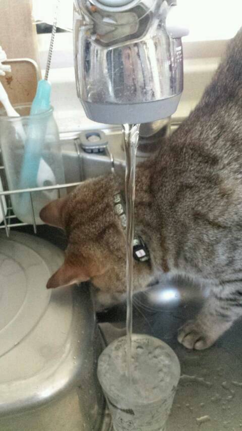 ところで最近のドラくんは、キッチンや洗面所でお水の音がすると速攻で駆けつけ、手元を極近でじーっと見つめてます。