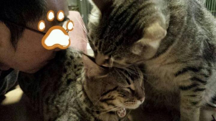 こちらはダンナさんとドラくんが、ニコちゃんにグルーミングしてあげるの図(笑)