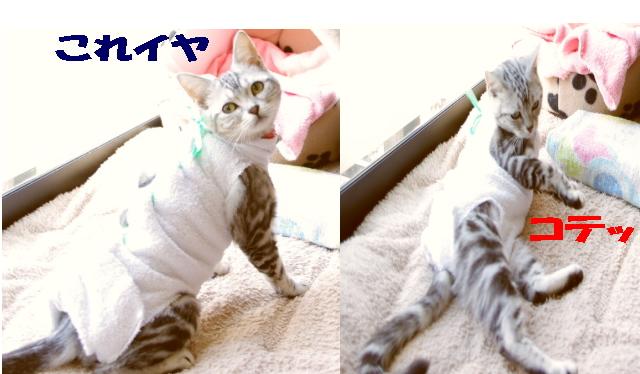 看護師さんにタオルで術後服を作ってもらい お家へGO!!