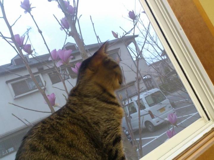 穏やかになった我が家、めめさんが木蓮愛でられておりました。