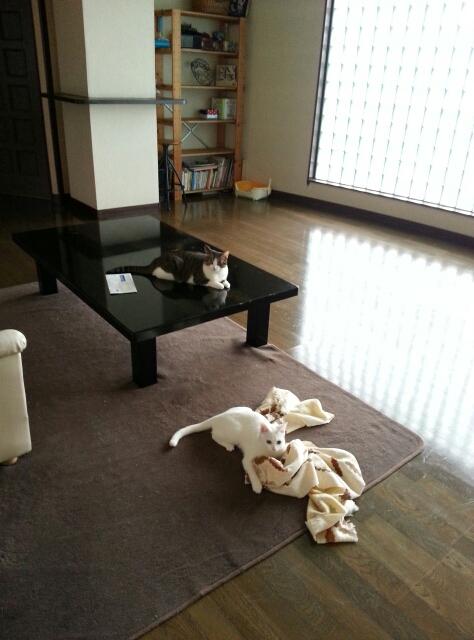 相変わらずぐちゃぐちゃにされてるテーブルクロスです(*_*)えーかげんにせーよ!